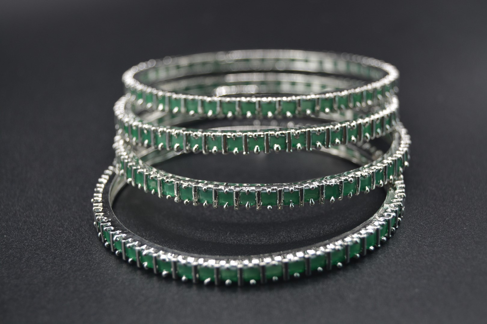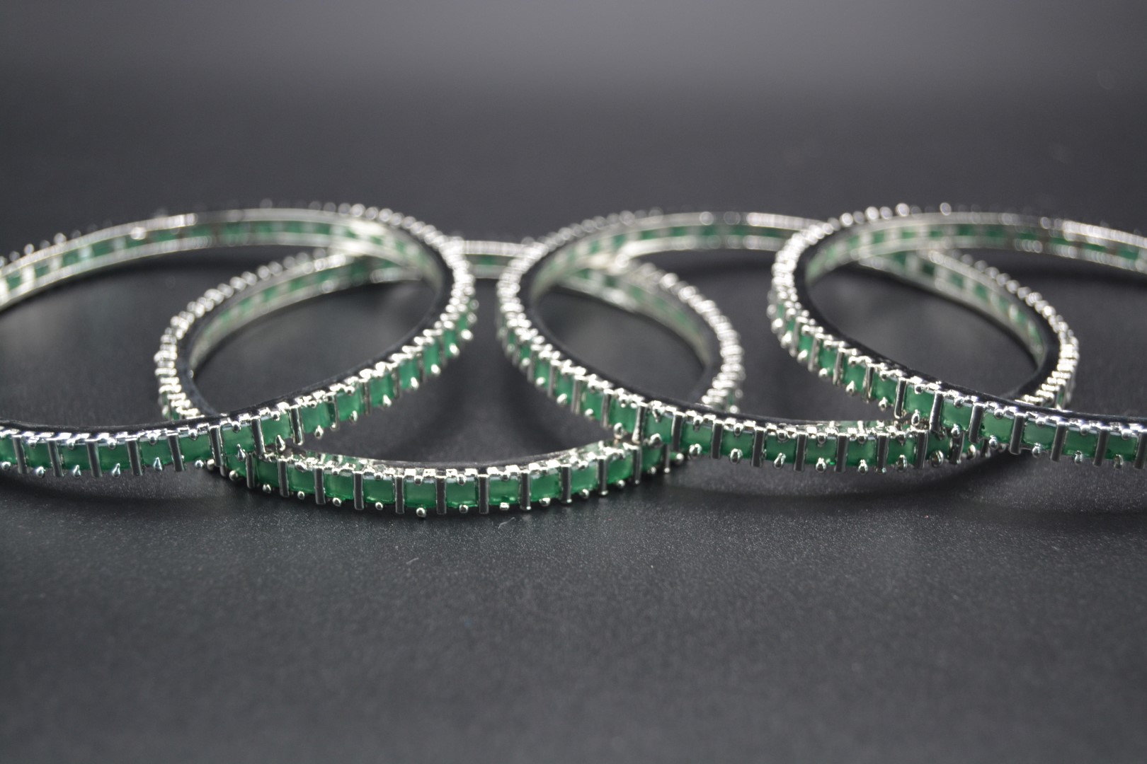 Adorned with high-quality cubic zirconia white stones, these bangles radiate a timeless charm that can effortlessly elevate any outfit. The pristine white stones are carefully chosen for their brilliance, ensuring that they catch and reflect light with a captivating sparkle.
