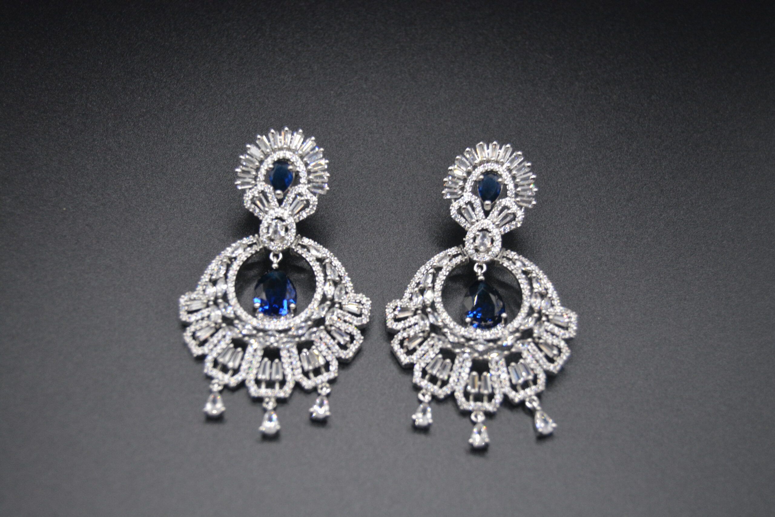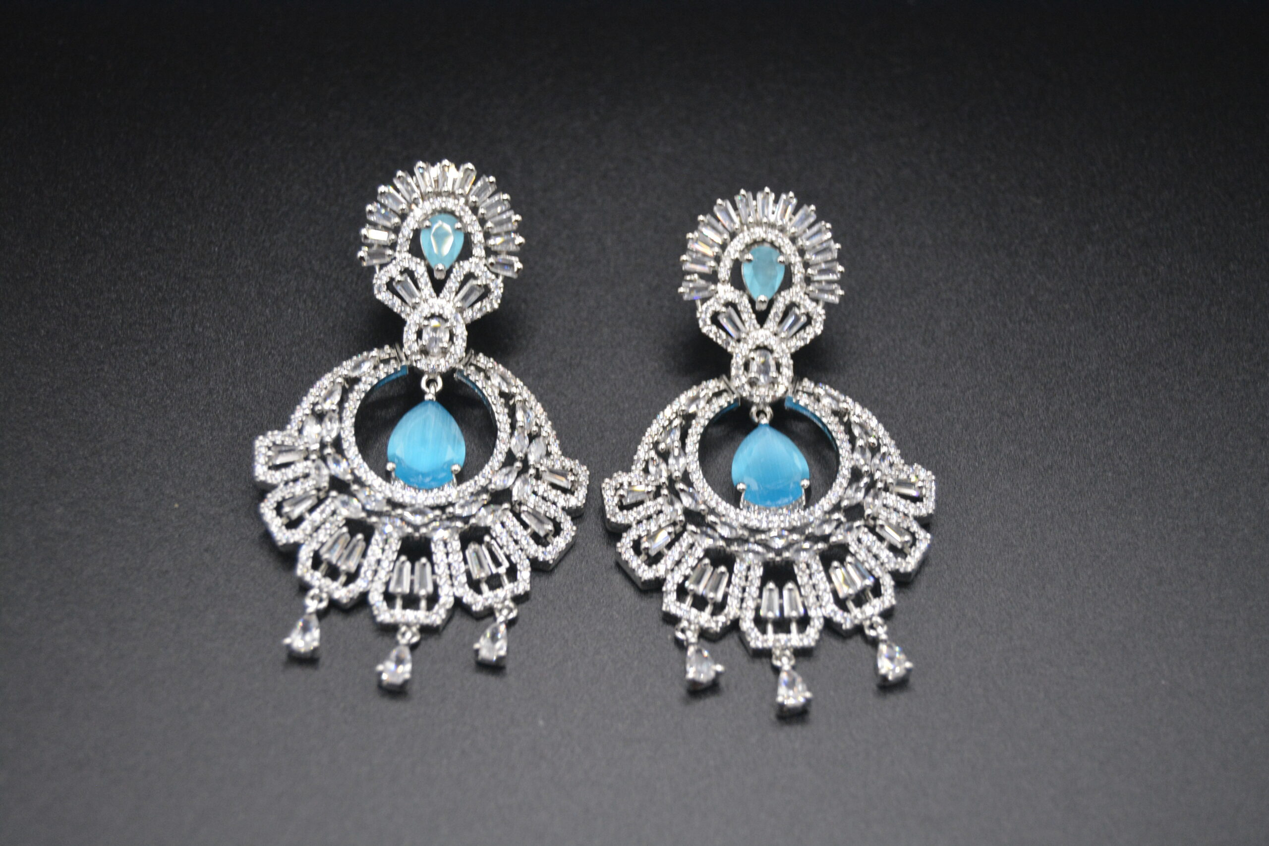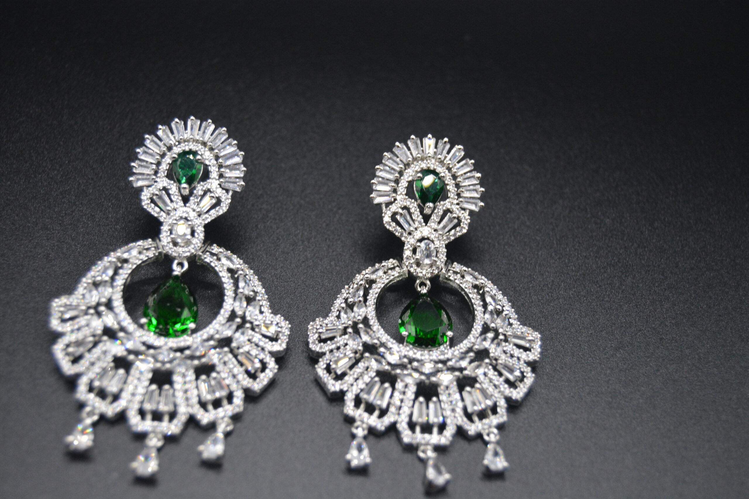 These earrings feature oversized cubic zirconia (CZ) stones that dangle gracefully, creating a striking and dramatic effect. The brilliance and clarity of the CZ stones mimic the sparkle of real diamonds, making these earrings an eye-catching statement piece for special occasions or when you want to make a bold fashion statement.