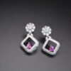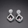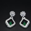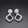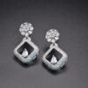These exquisite earrings feature a charming flower-shaped stud at the top, symbolizing beauty and nature. Below the flower stud, a sleek square-shaped drop dangles gracefully, adding a contemporary touch to the design.