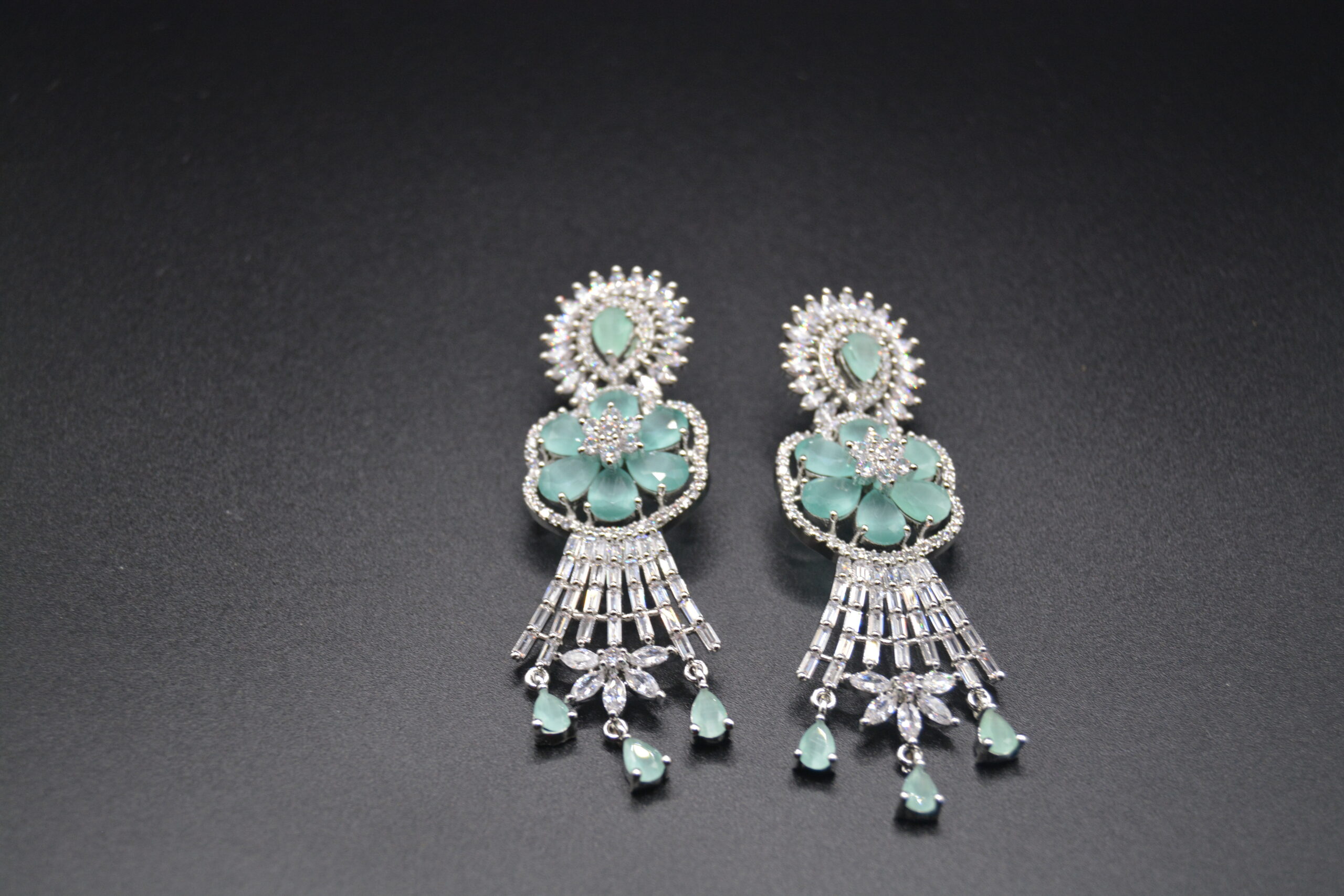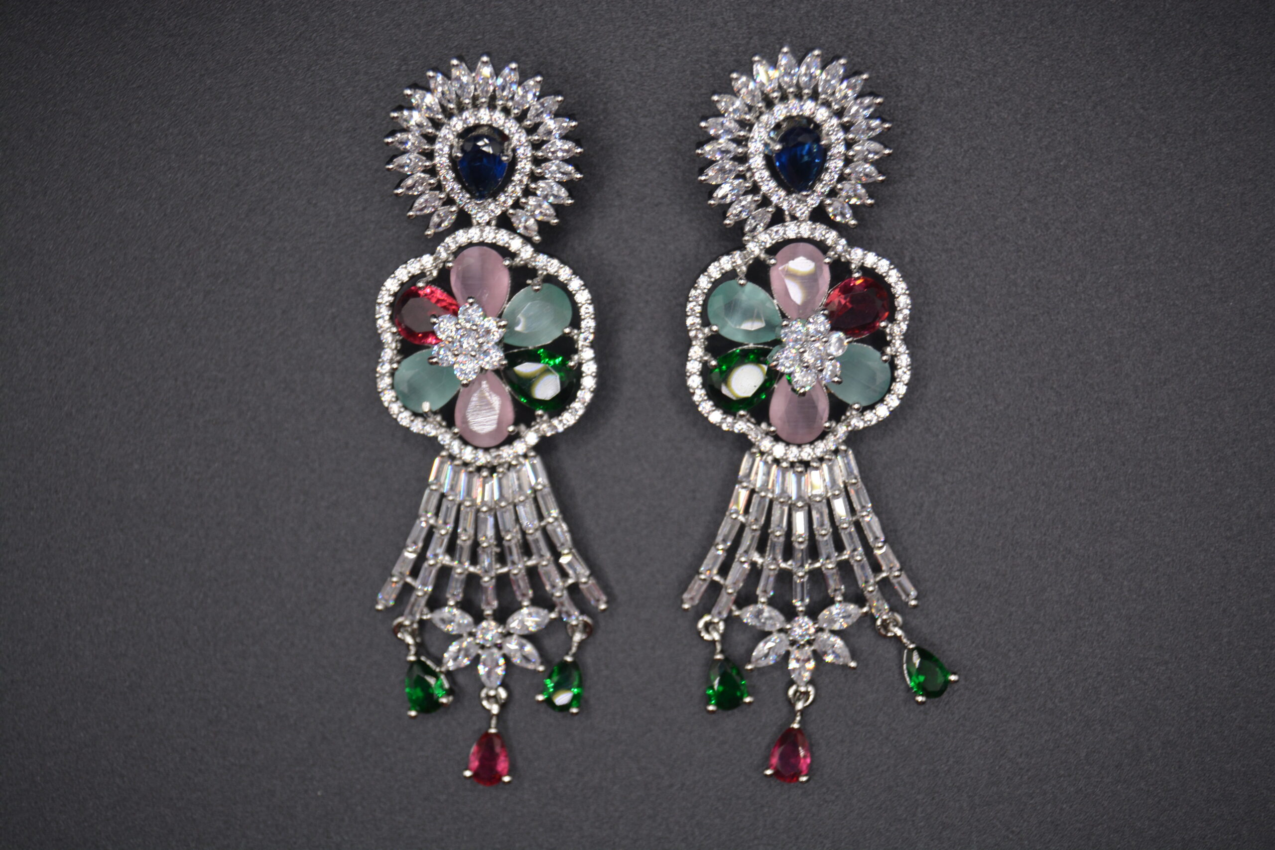 The elongated design of these earrings adds a touch of drama and sophistication, making them perfect for formal events, weddings, or any occasion where you want to make a statement. They gracefully sway with your every movement, catching the light and drawing attention to your unique sense of style.