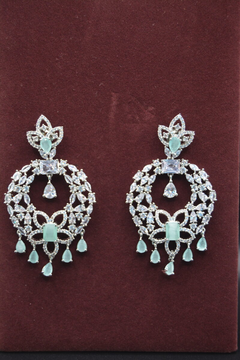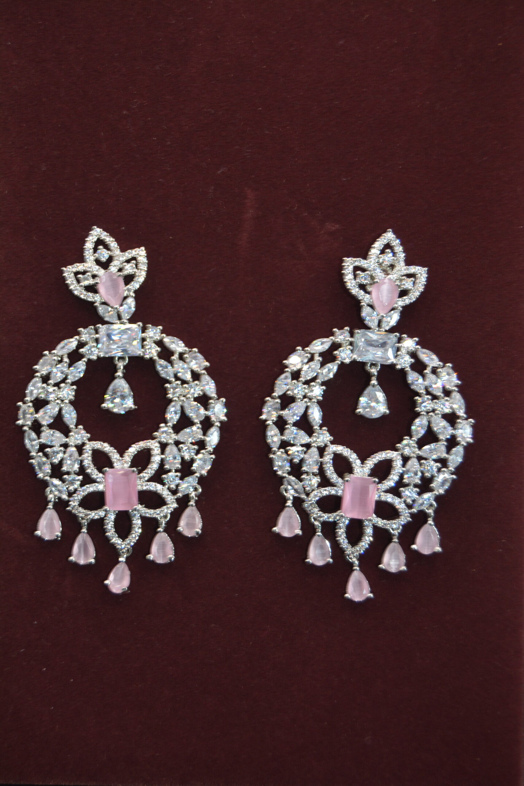 These earrings feature oversized cubic zirconia (CZ) stones that dangle gracefully, creating a striking and dramatic effect. The brilliance and clarity of the CZ stones mimic the sparkle of real diamonds, making these earrings an eye-catching statement piece for special occasions or when you want to make a bold fashion statement.