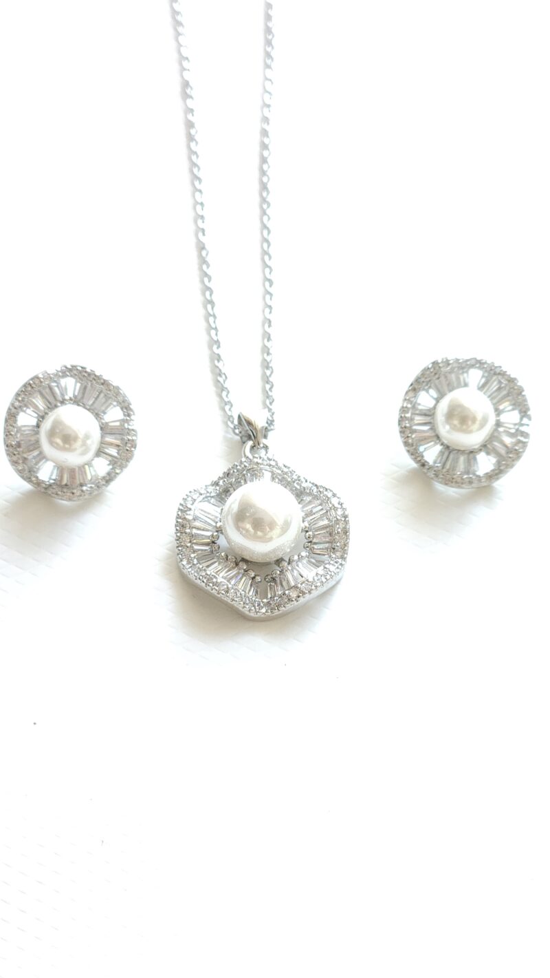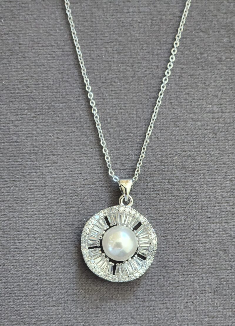 Add a touch of elegance to your outfit with this stunning white stone pendant with pearl.